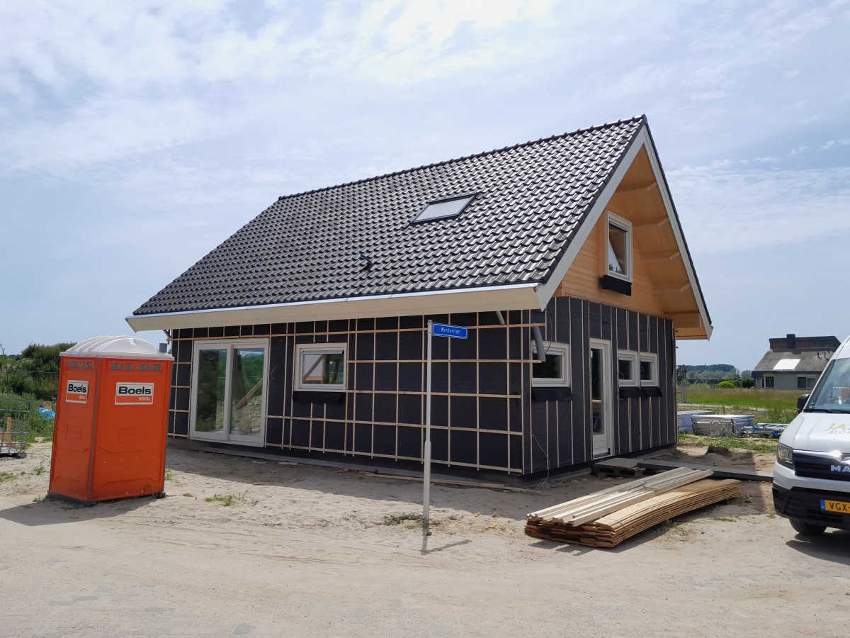 - buitenwanden en gevels hebben we bekleed met onbehandeld, inlands eikenhout (behoeft geen onderhoud, zal dan wel vergrijzen);