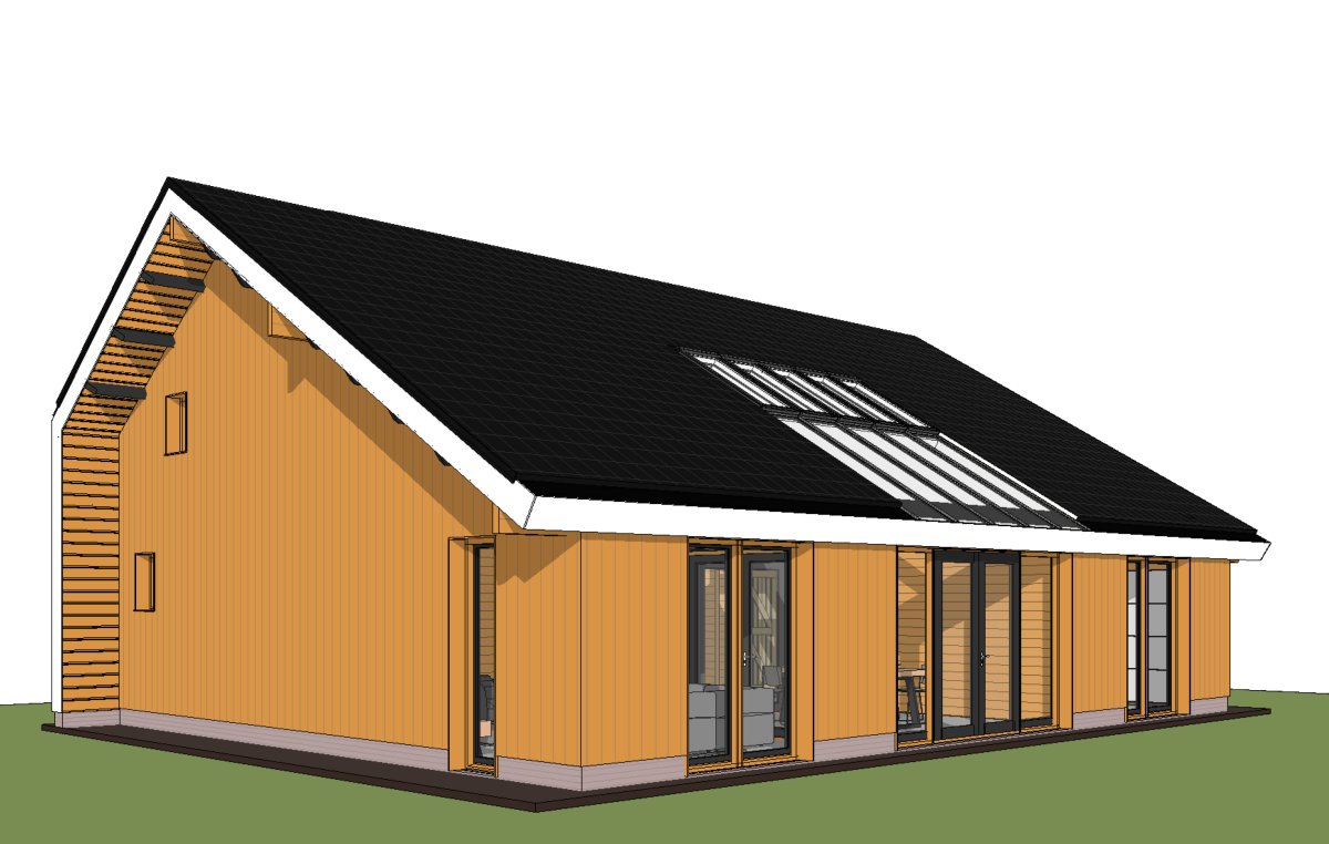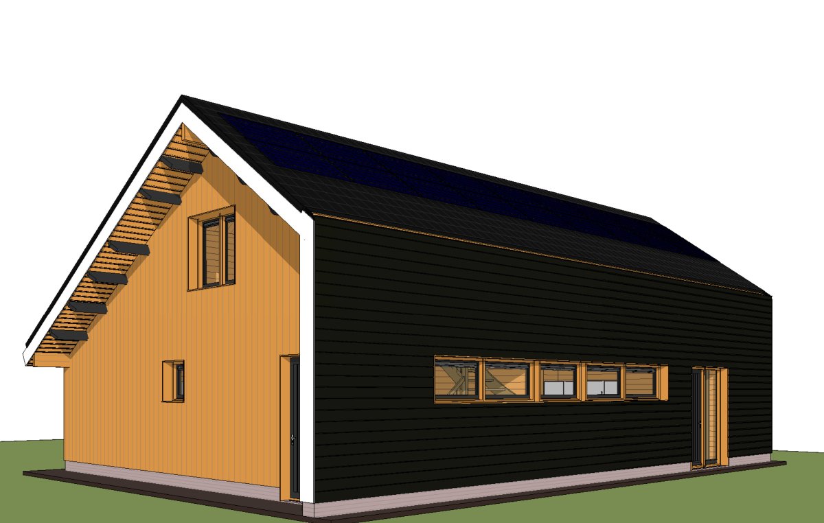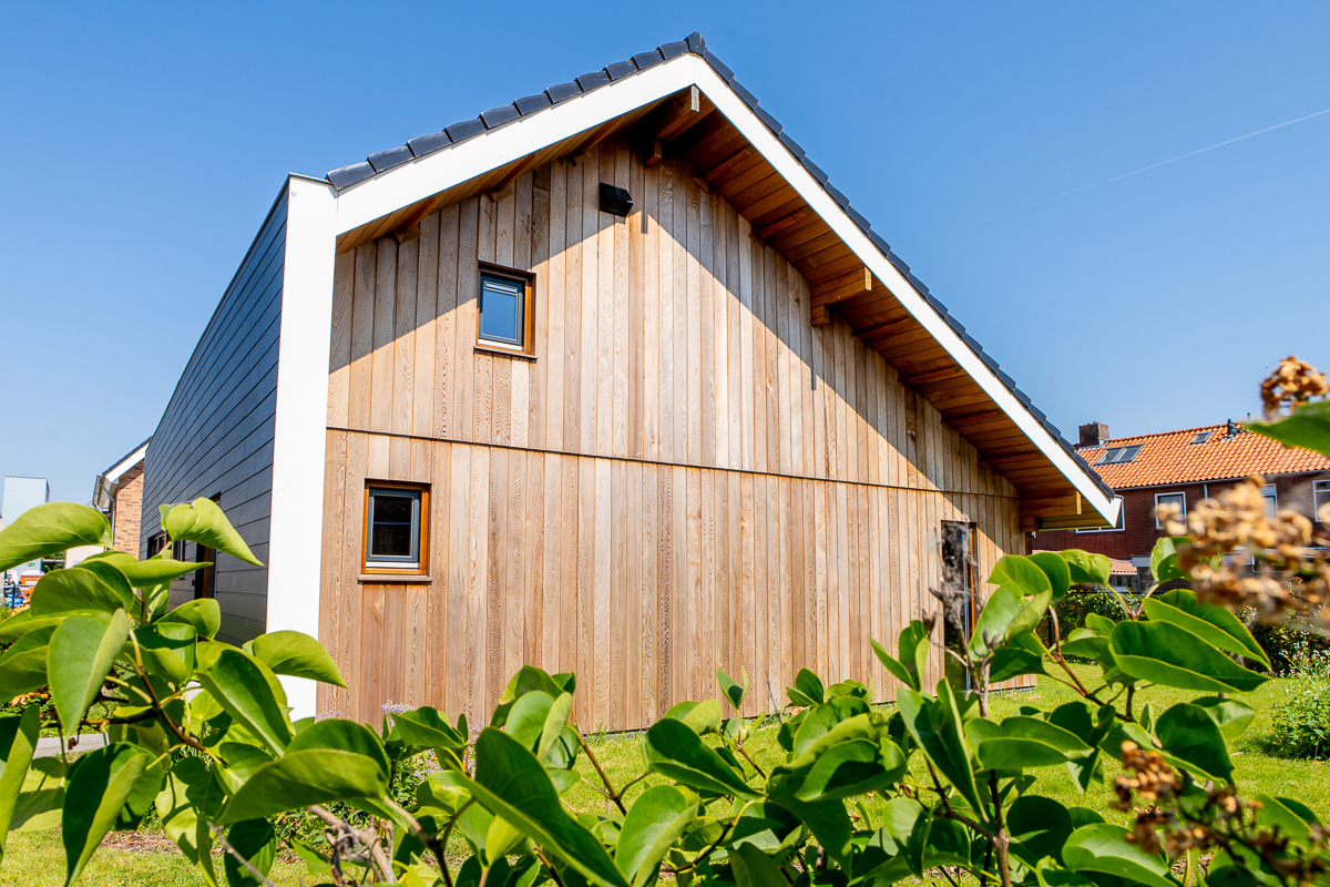 Wandopbouw: 88 mm logs + wandisolatie + Red Cedar buitenbekleding