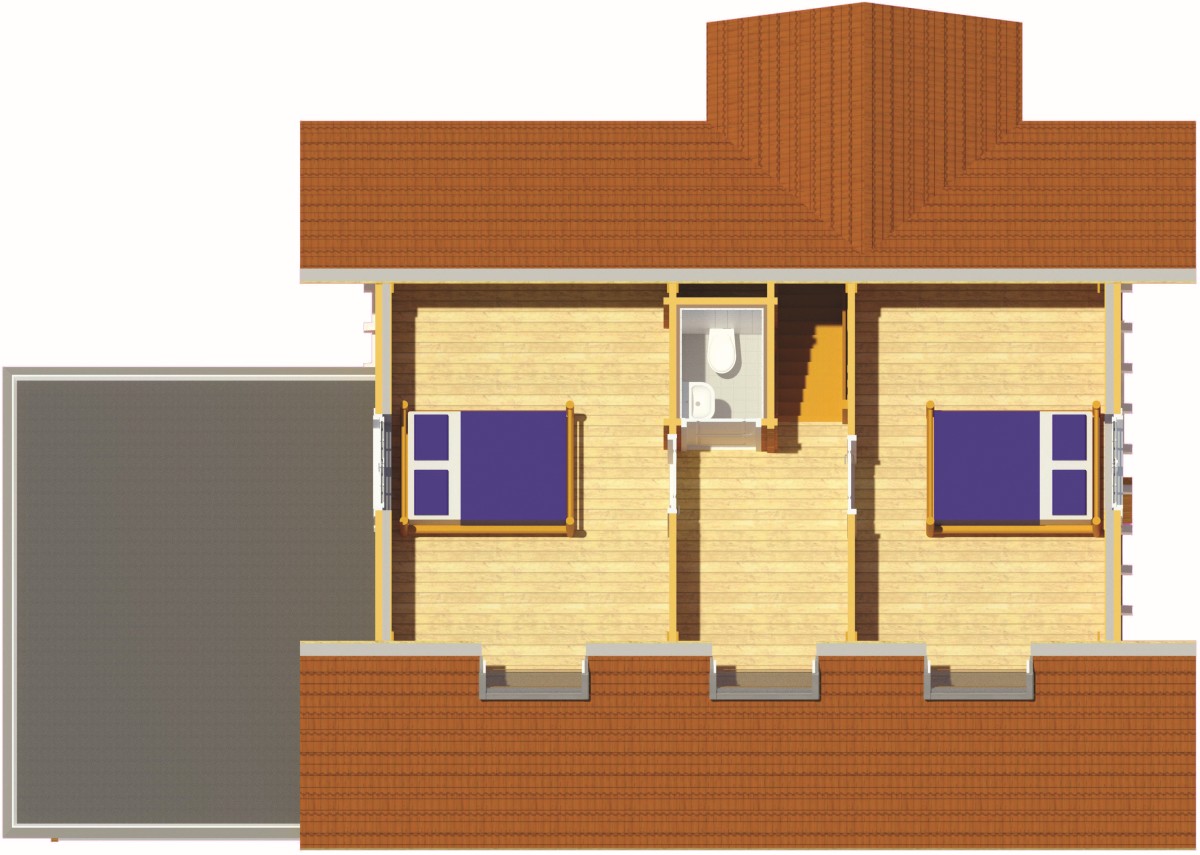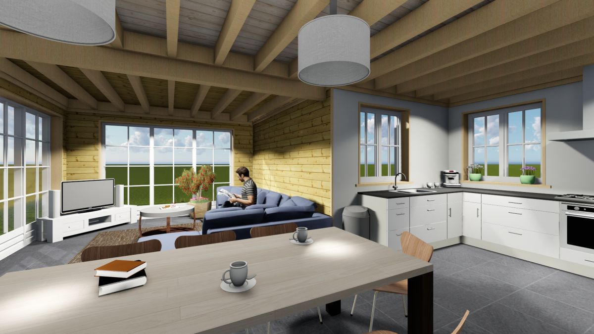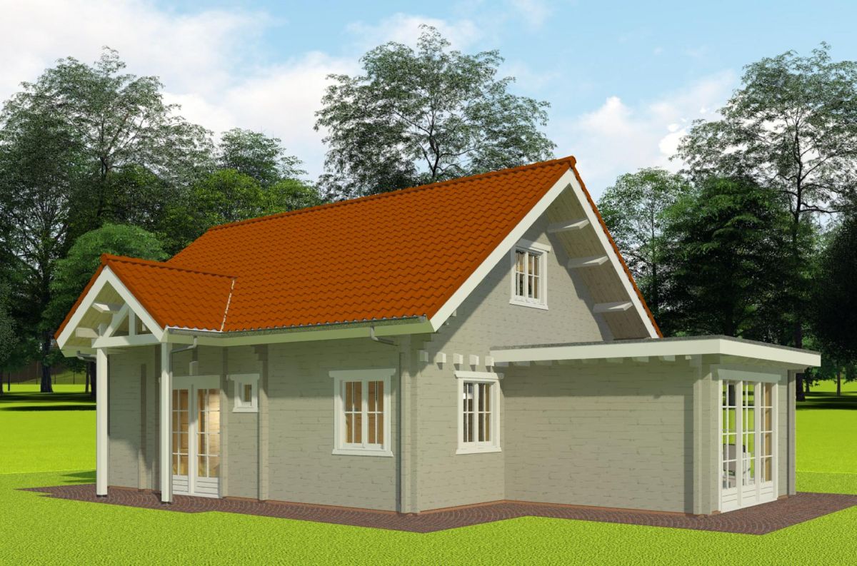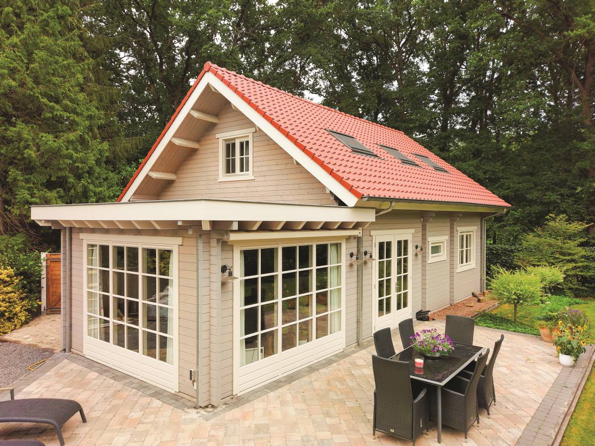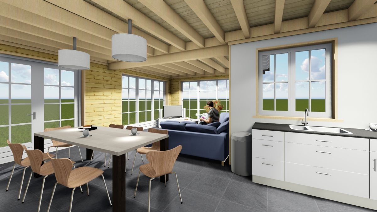 Wandopbouw: 88 mm logs + wandisolatie + binnenbekleding