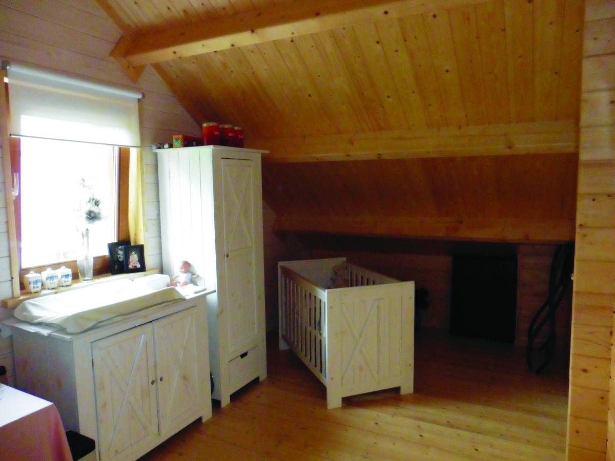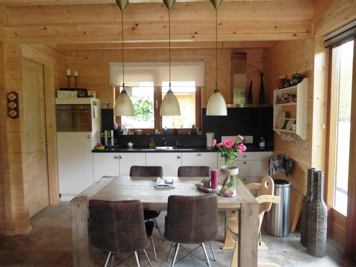 Wandopbouw: 88 mm logs + wandisolatie + binnenbekleding