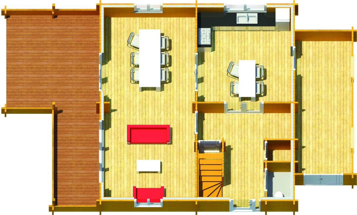 Wandopbouw: 88 mm logs + wandisolatie + binnenbekleding