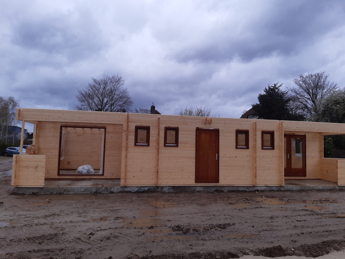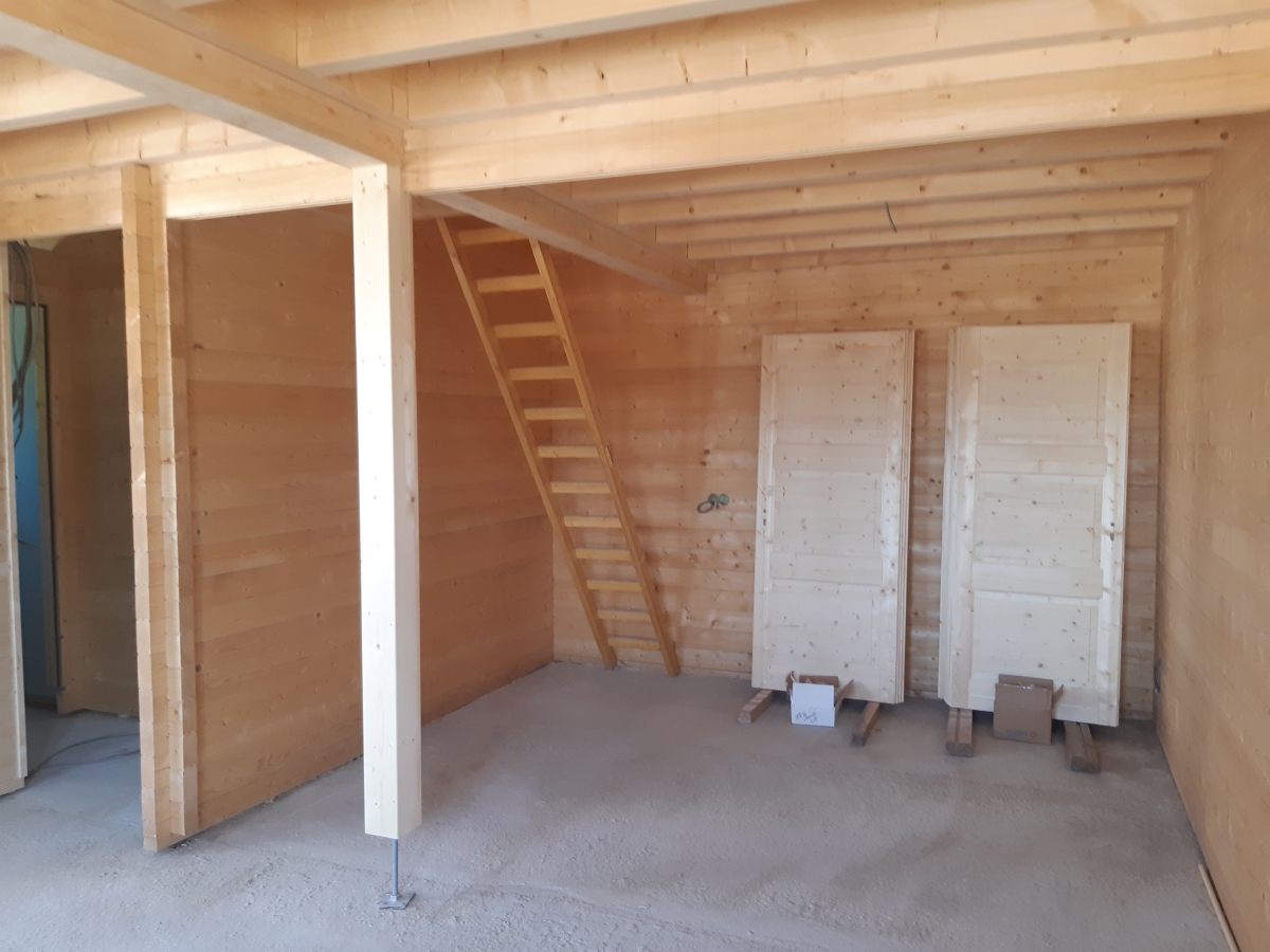 Wandopbouw: 88 mm logs + wandisolatie + binnenbekleding