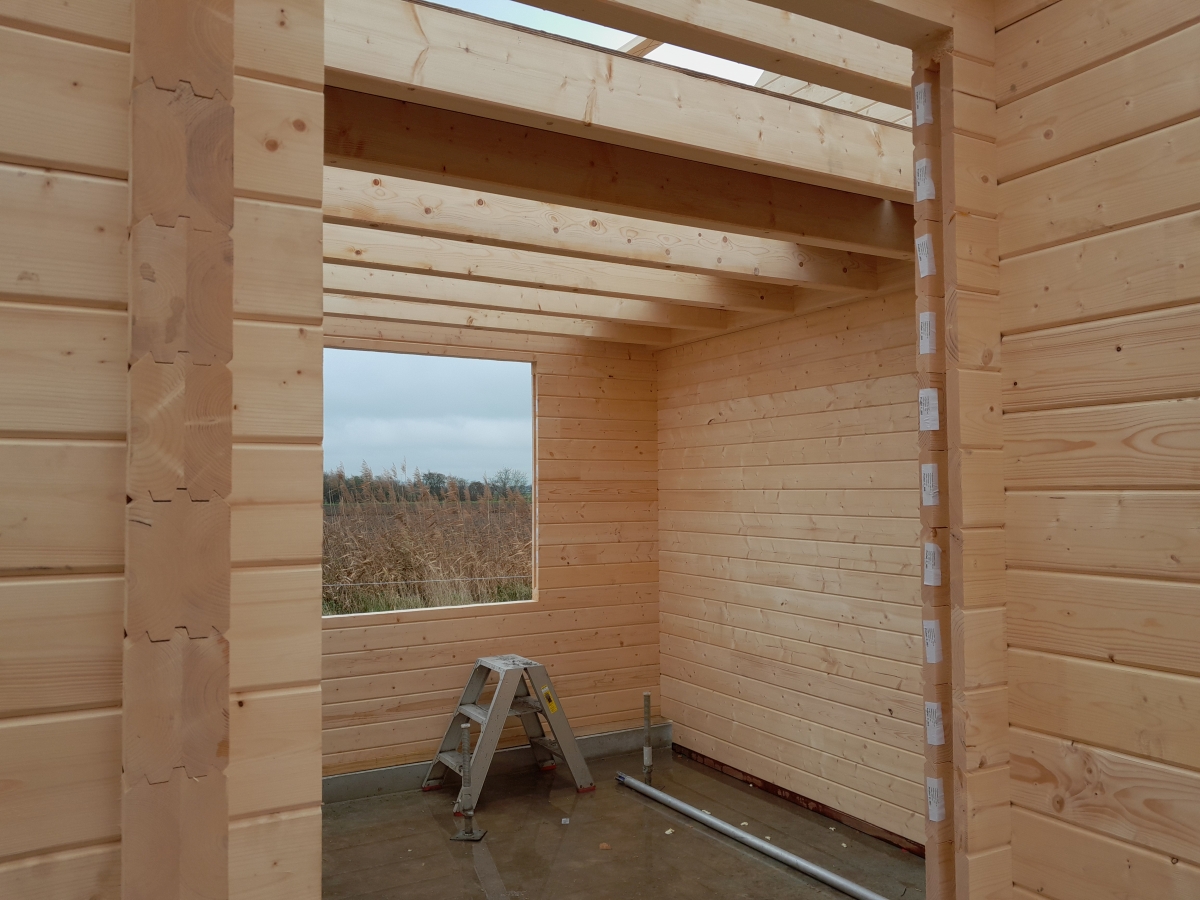 Massieve wanddikte: 88mm logs + natuurlijke houtvezelwandisolatie + binnenbekleding